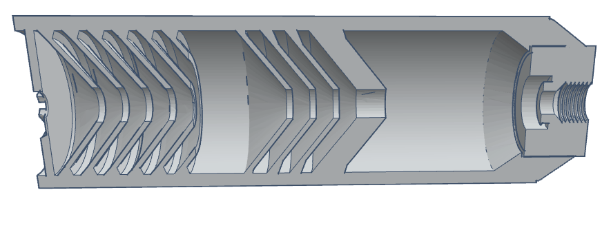 This high-performance air rifle silencer features a CAD-designed mono baffle, expertly engineered to deliver superior noise suppression and shot-to-shot consistency. The baffle is enclosed within a 3D-printed, air-spaced outer cover, created using a 0.25mm fine nozzle for exceptional surface finish and detail. The air-spaced design enhances thermal stability and acoustic dampening, while the reinforced multi-wall construction ensures maximum stiffness and durability under pressure. Choice of 3d printed baffle shield or for greater sound absorbson a tube of Basotect G+ can be purchaced.